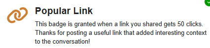 Ah, yes, that one badge otherwise known as Popular Link. Amongst the hall of the most glorious accomplishments that one on The MakeCode Forums could dream to achieve.