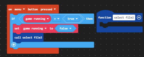 for the next part, make sure to turn off the games running variable to avoid repeats, and make sure the player is menu ready.