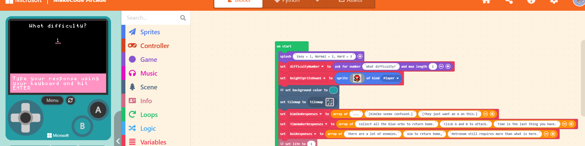 Hey! Currently I am having a lot of problems with my user input section. This is specifically on the splash “difficulty number” section, as it is not allowing for the user to go beyond this screen even when they press enter. Does anyone know why it does this?