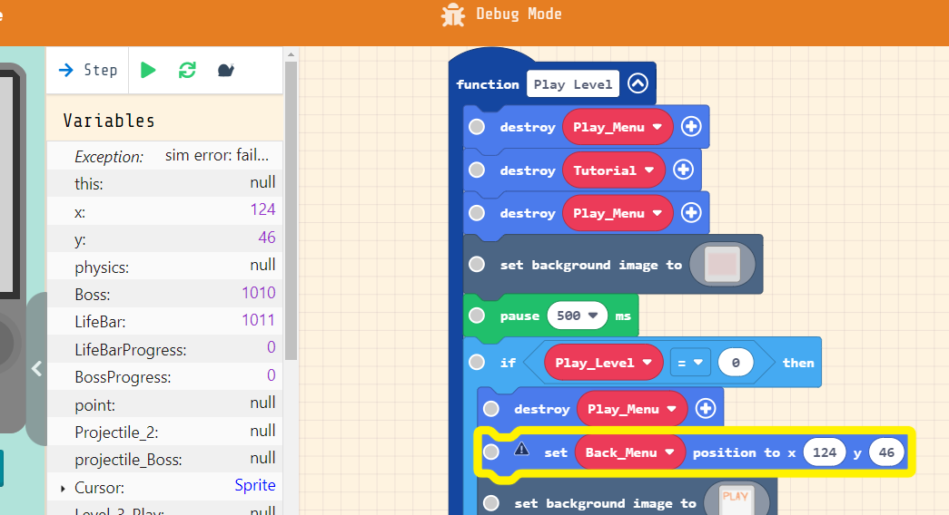 for the first time when PlayLevel == 0, back_menu hasn’t been created yet – I saw it being made in the later levels but just not there it looks like:)