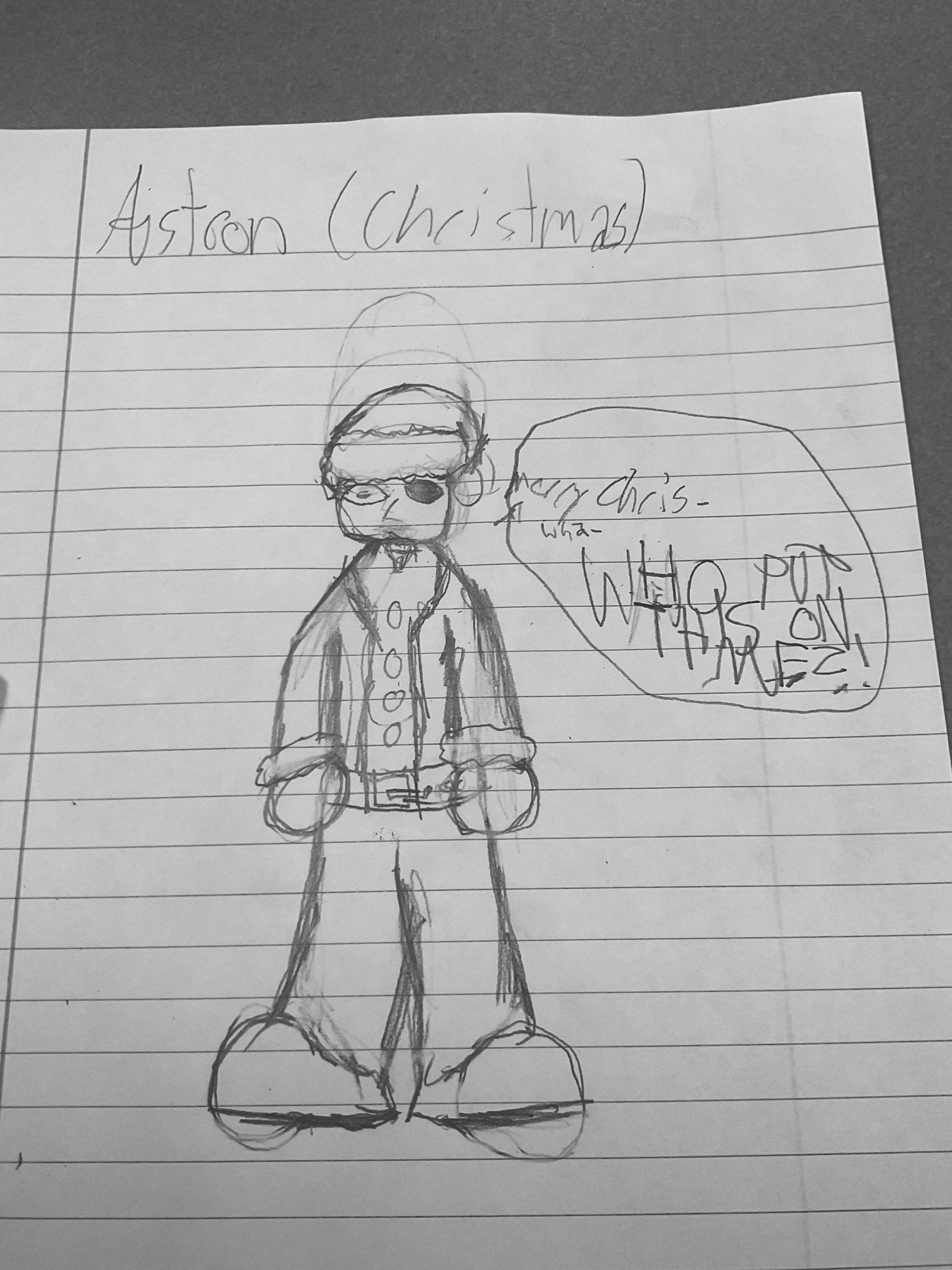 Text says āMerry Chris- wha- WHO PUT THIS ON ME?!ā