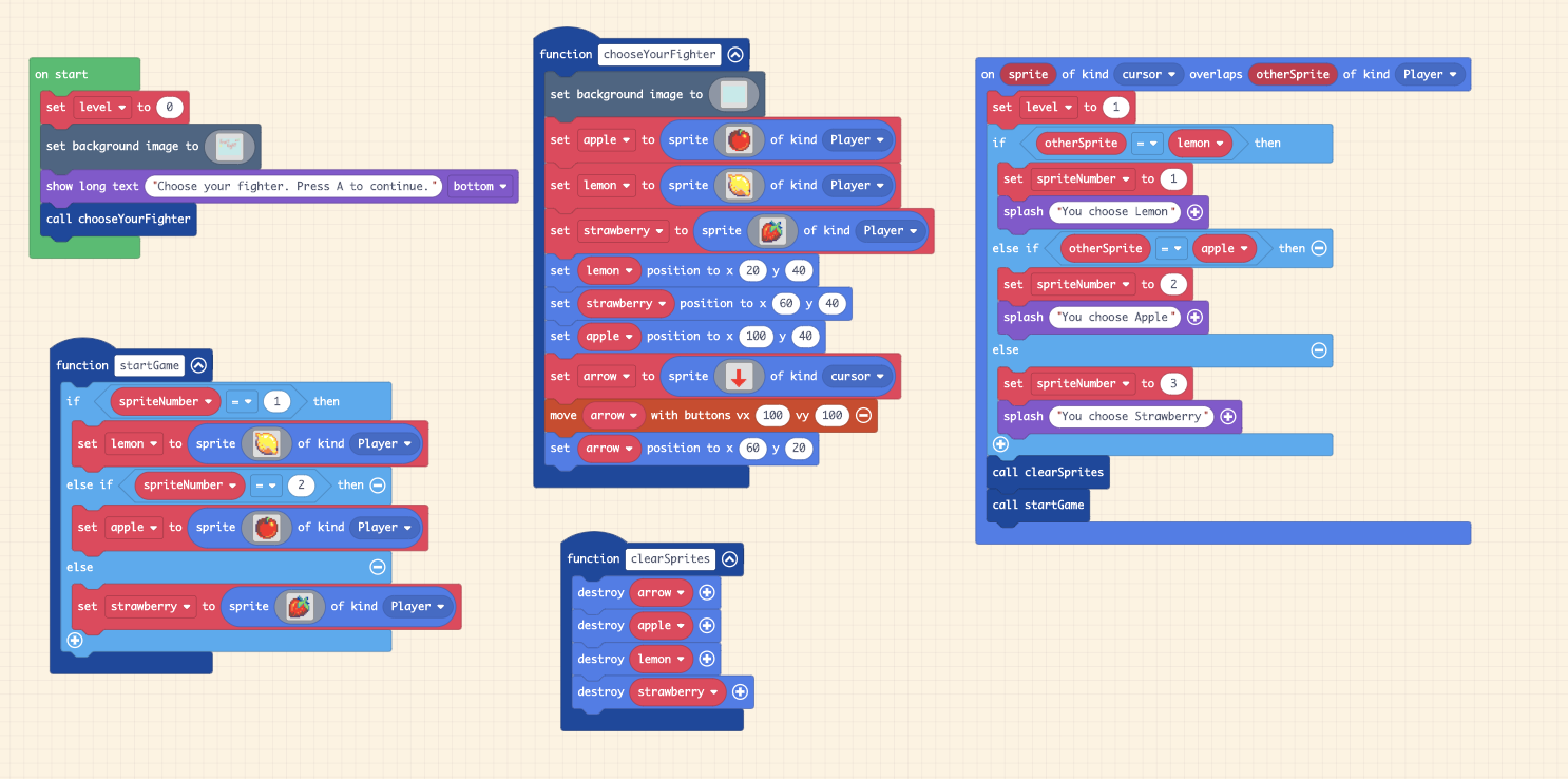 Hello, I am trying to use you code but I can not figure out how to get the function call clearSprites Choices. Can you please help me? I am a beginner and it only lets me call the red variables on the function