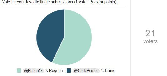 Good luck to both contestants! I put my vote on Requite.