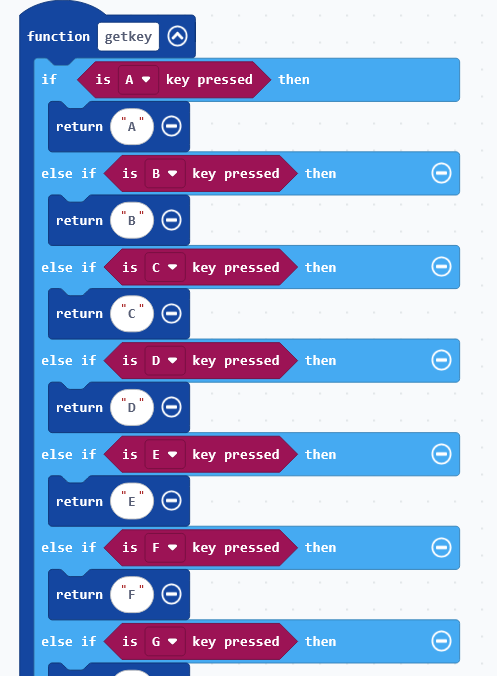 In other words, a block that says “return key press” that returns a string with the name of the key that was pressed instead of having to do it manually like this: