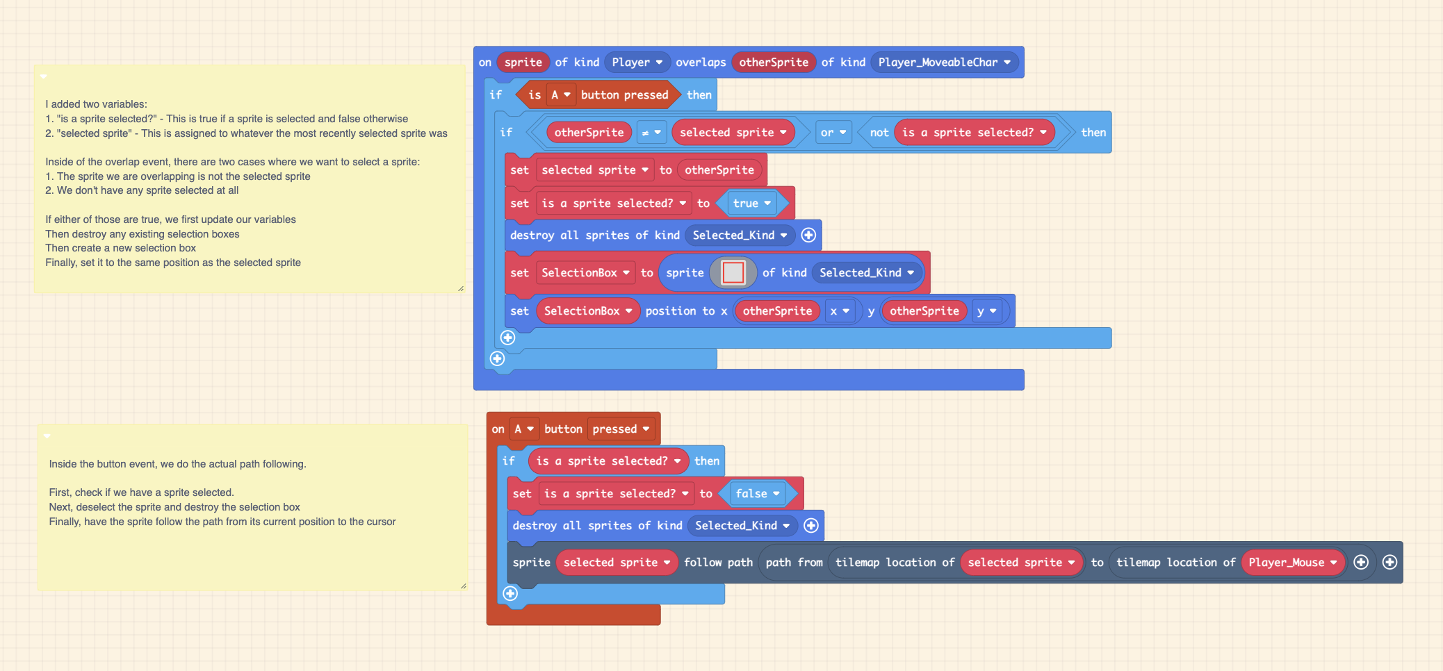 What I’ve Tried : There is a path following extension which I’ve began using… I imagine you would use the selected sprite’s current tile, and then the chosen tile to fill in the variables and have it move…