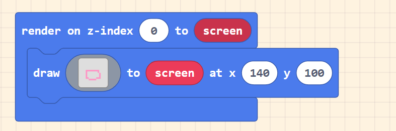 The other easy way is to use the jwunderl/arcade-sprite-util extension’s ‘render on z index’ block. This will let you draw directly to the screen with a z index you set (so you can set it to e.g. 80 if you want it to show up above other sprites that you have made since it’s a menu):