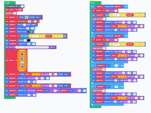 i tried to make a collect game where you had to get 100 fruits and if 1 fall, then game over. it took me about 2 hours so here you go!