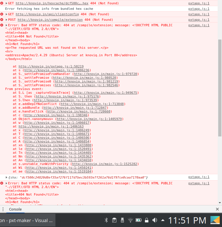 The editor tries to call our cloud backend api that does the native compilation. Since you are not hosted on our server, it is unavailable to you. You will need to implement this api and host on your backend.