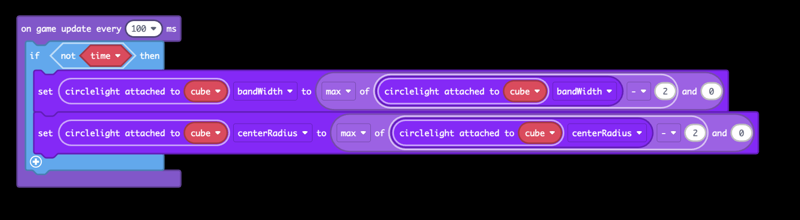 I’m trying to make the circle light slowly get smaller and smaller kinda like a fading effect since that’s what I did before I added a torch. (I made the colors fade to a darker version)