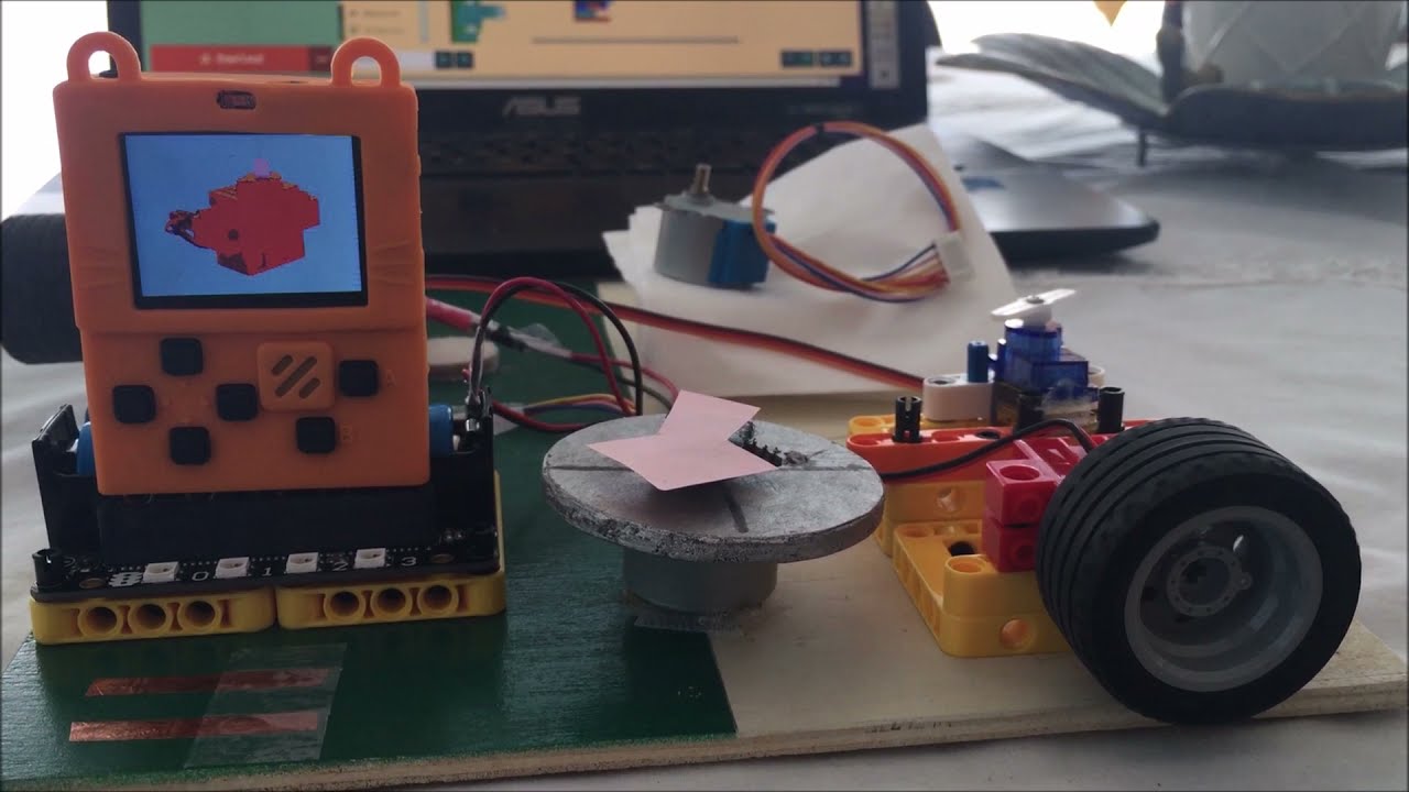 Using Arcade to explain Motor types. The Meowbit with edgeconnector plugged into Kittenbot Robotbit (https://www.kittenbot.cc/products/robotbit-robotics-expansion-board-for-micro-bit) allows use of several types of motors. This Arcade story shows motors and their uses: