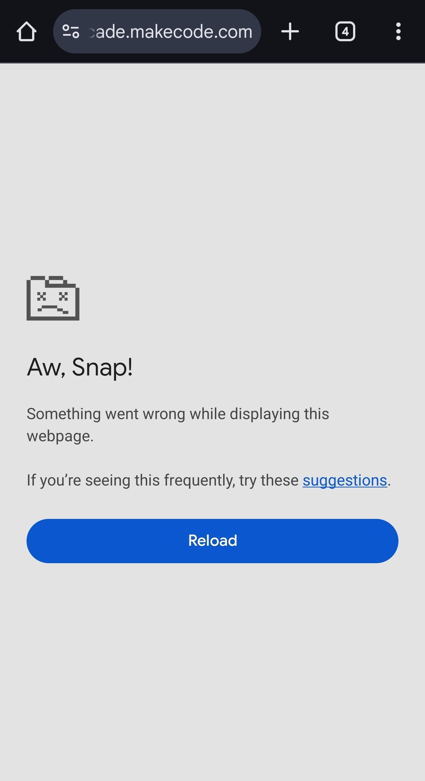 So recently, (literally earlier today at lunch hours for the US) my project–Sonic STRATOS–was functioning perfectly fine when just now as i type, after what i can only assume is a new version released of MakeCode Arcade, my project no longer opens. It pretty quickly shows the google chrome “Aw Snap!” Page. This has already been an issue as far as larger Arcade projects go but somehow this problem has become even more sensitive or something?