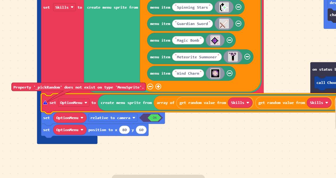 Does anybody know how to make a menu have random options? I’m making a game and part of it needs to have a menu that has random options in it that the code chose from an array or something. (thats how I think it should work)