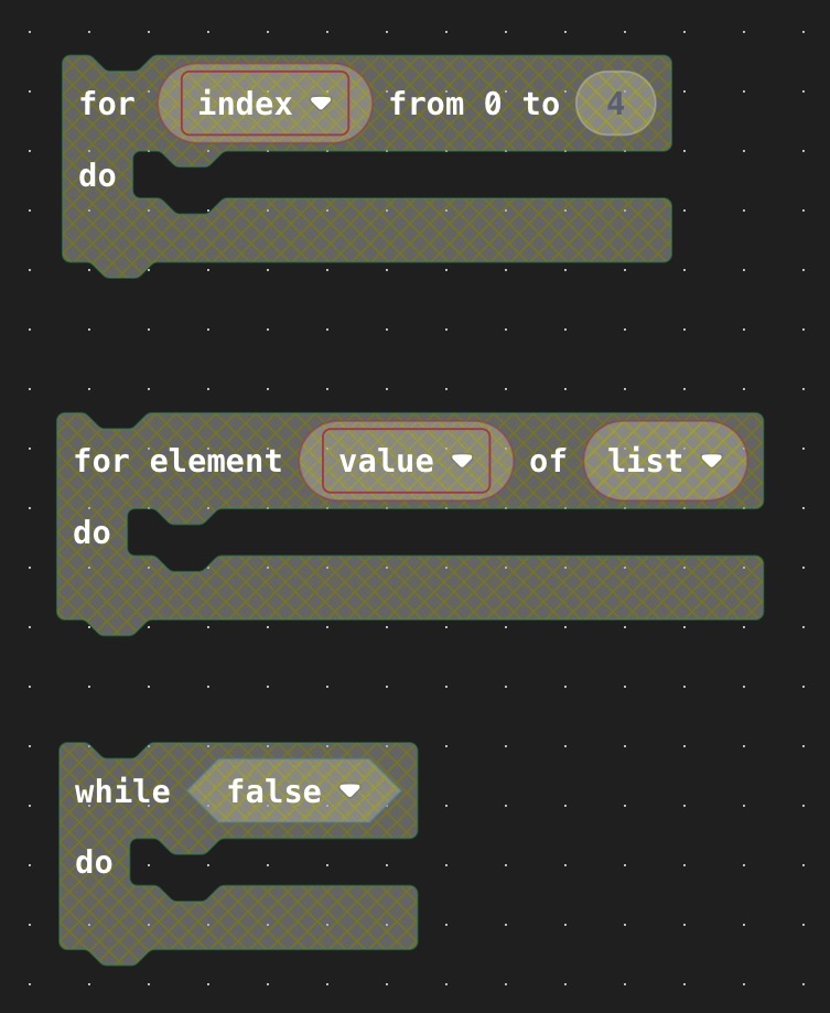 For [index] from 0 to 4 allows you loop a set amount of times while having an “index” value to keep track of the current loop. You can use it for enemy generation and such, but here’s a simple example: