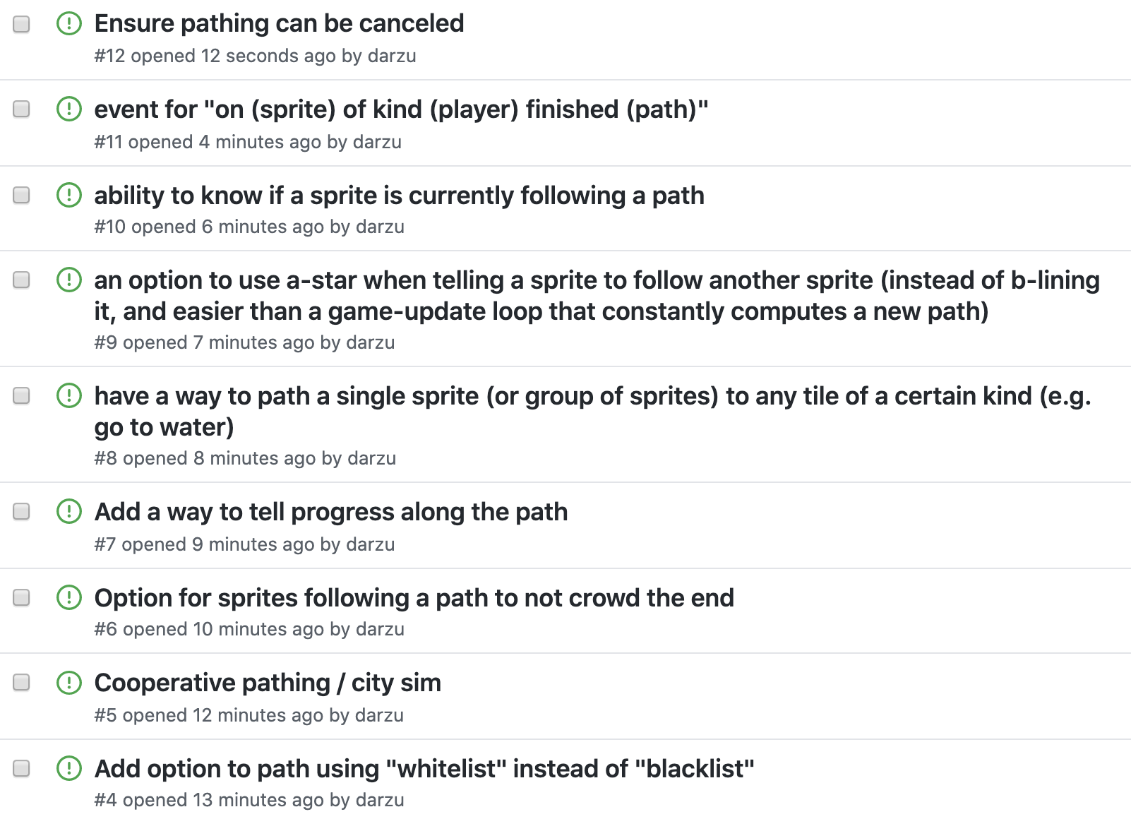 Quick note that this extension is definitely in a ‘beta’ form; the blocks ‘work’ but may change after trying it out a bit more / there may be more additions. Also, I’ll almost definitely change how the path following works; right now it’s a very fragile / was just quickly put together – if you try and change the velocity of the sprite, or the sprite is too large to fit through a path (i.e. sprite is larger than 16x16 most of the time), the path following logic will just break / act sporadically.