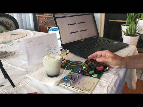 Video: code in description. Continuing with DFRobot Micro:IoT board and ThingSpeak wifi system to send computed temperature (from C to F) and display on TFT screen and computer/cell phone via ThingSpeak service. Added activation of servo to the board. As yet we do not know how to send strings or data from phone/computer back to IoT board but we hope to learn that sometime soon;
