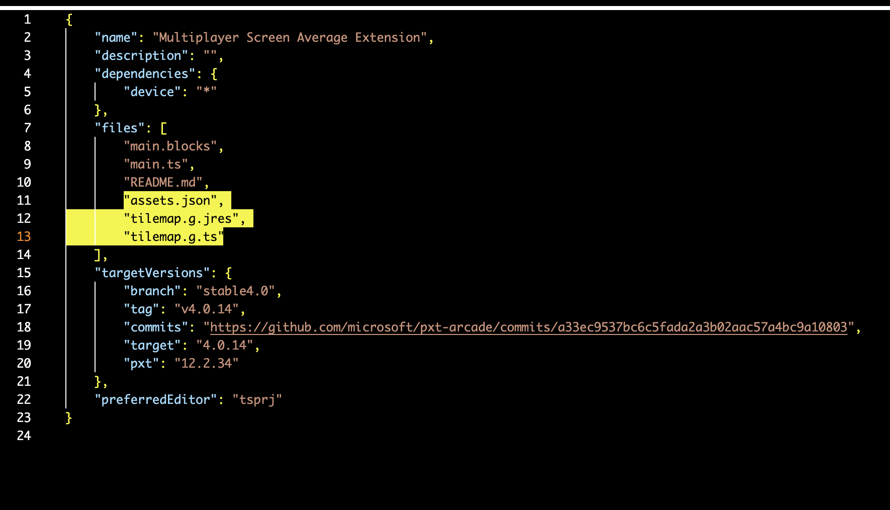 This is happening because both your extension and your project contain the tilemap and assets files, causing certain variables to be duplicated. To stop these files from downloading when you add your extension, go to the json file, click “Edit as Text”, and remove the highlighted files: